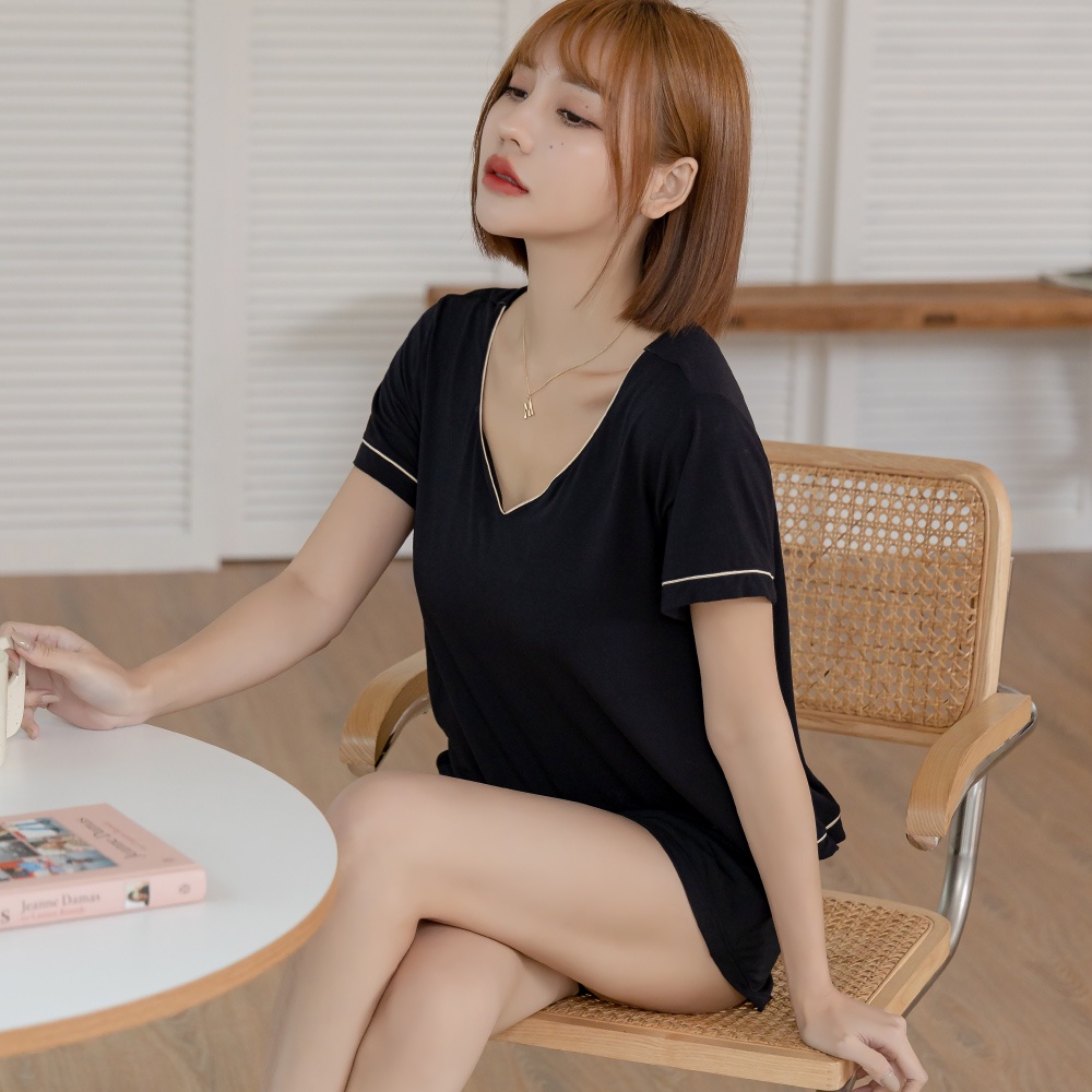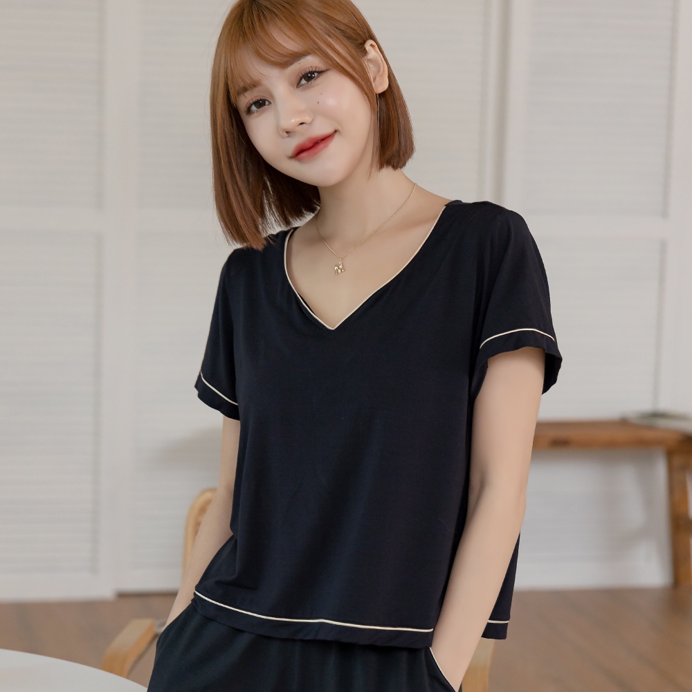 【Mini Queen】單件上衣 戀家妍秀 睡眠內衣2in1 莫代爾美胸調整型居家睡衣x晚安內衣 (經典黑S-4XL)