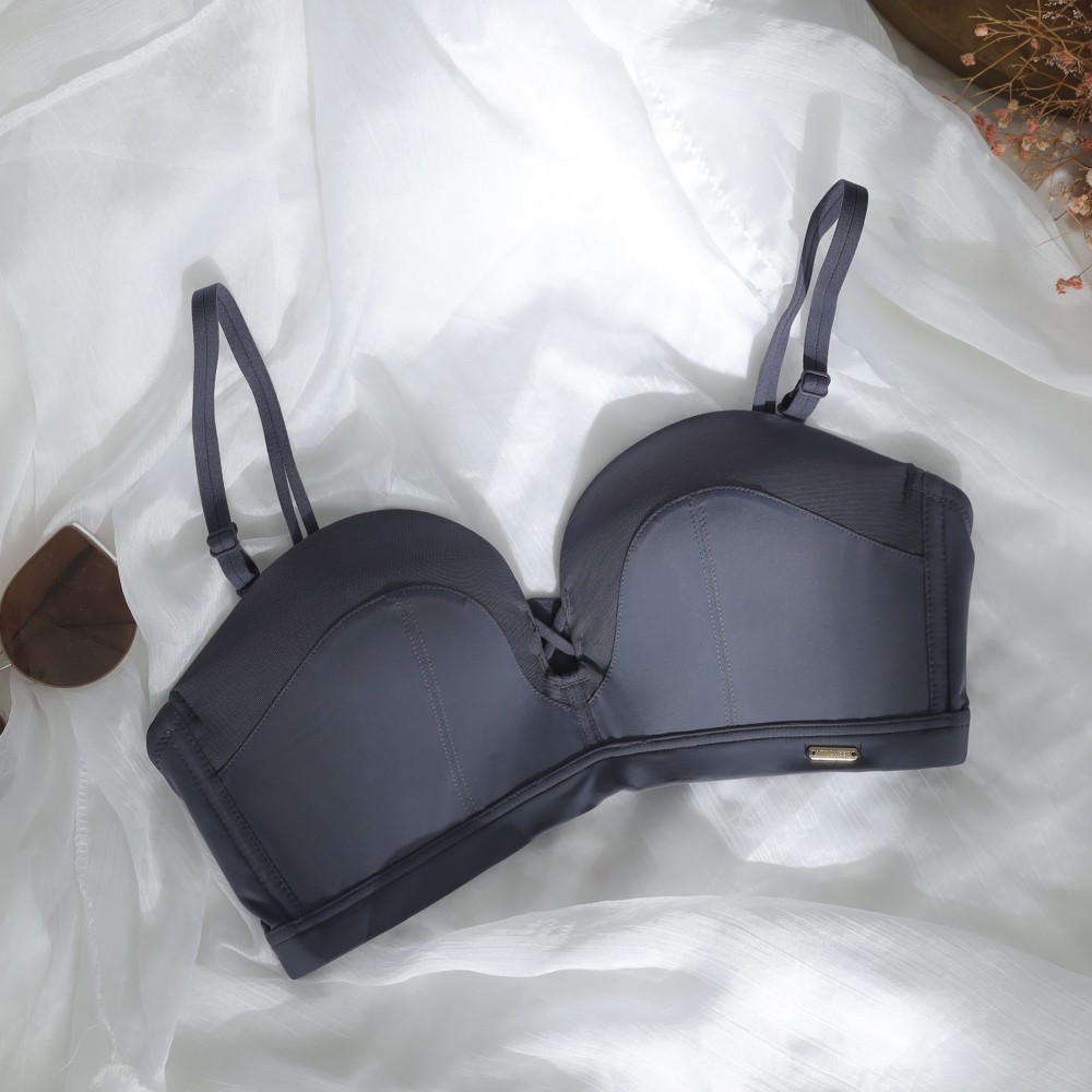 【Mini Queen】獨家 有氧日記 單內衣 2WAY挺胸愛心杯零脊心拼接感交叉細帶無鋼圈內衣(灰藍色65B-90H)