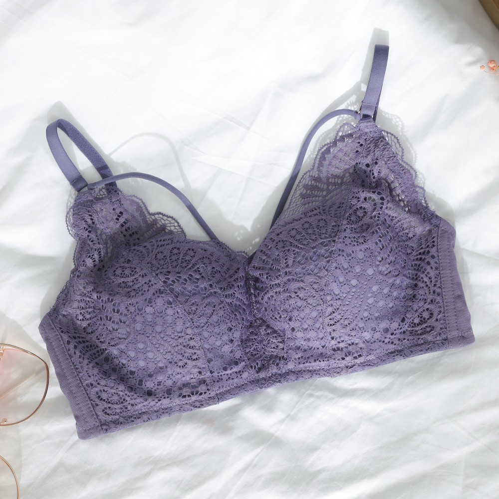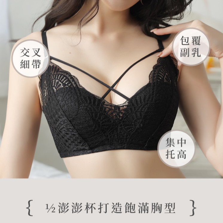 【Mini Queen】獨家 魔鏡樂園 單內衣 澎澎杯交叉細帶浮雕蕾絲包覆軟鋼圈內衣 (灰藍紫65B-95F)