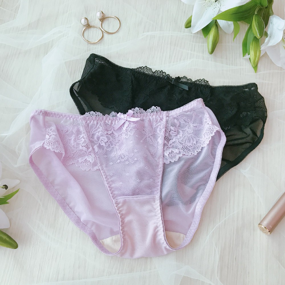 【Mini Queen】獨家 情牽布莉 單內褲 浪漫細緻柔軟透膚蕾絲三角褲 (2色)