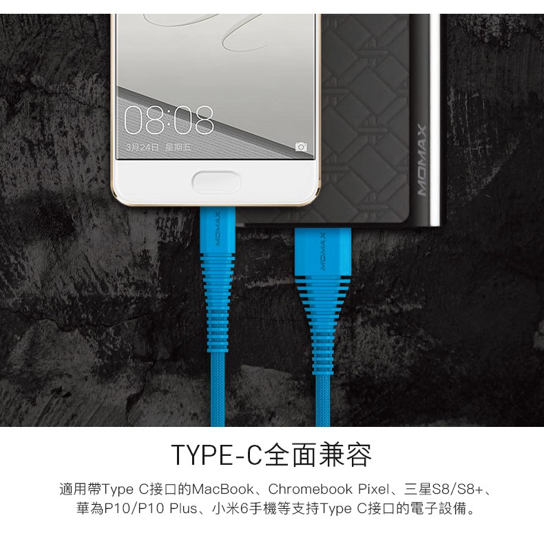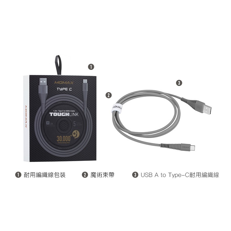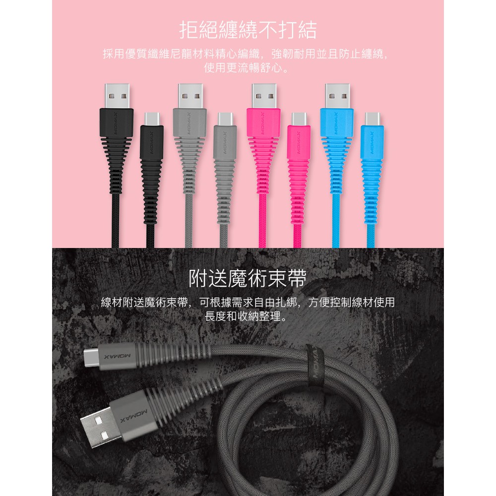 【MOMAX原廠】 Tough Type-C 3A快充編織連接線1.2M