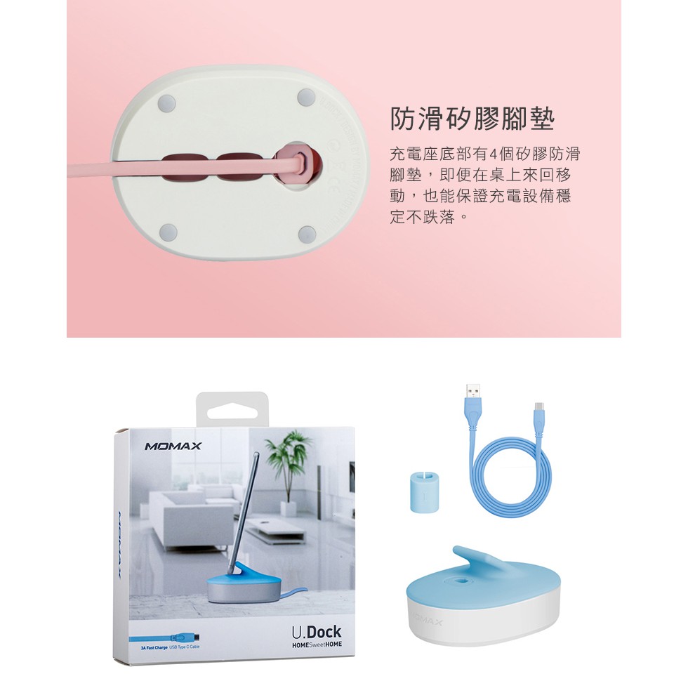 【MOMAX原廠】 U.Dock 3A快速充電 Type C接頭/快速充電座 線長1M