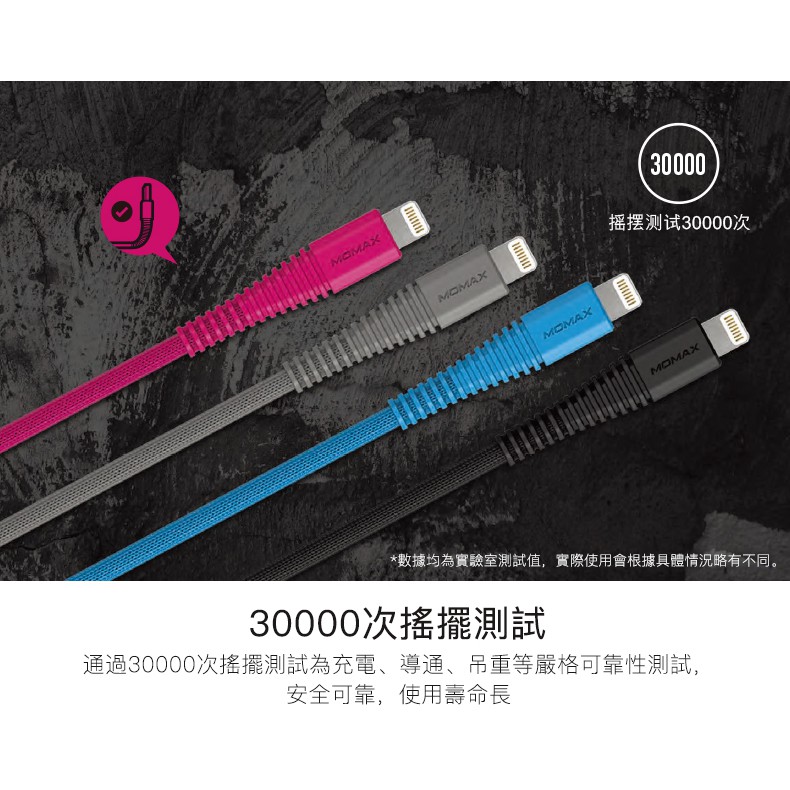【MOMAX原廠】 蘋果MFi認證/堅韌不斷/高密度尼龍編織款/充電傳輸線 1.2M-黑 粉 藍 灰