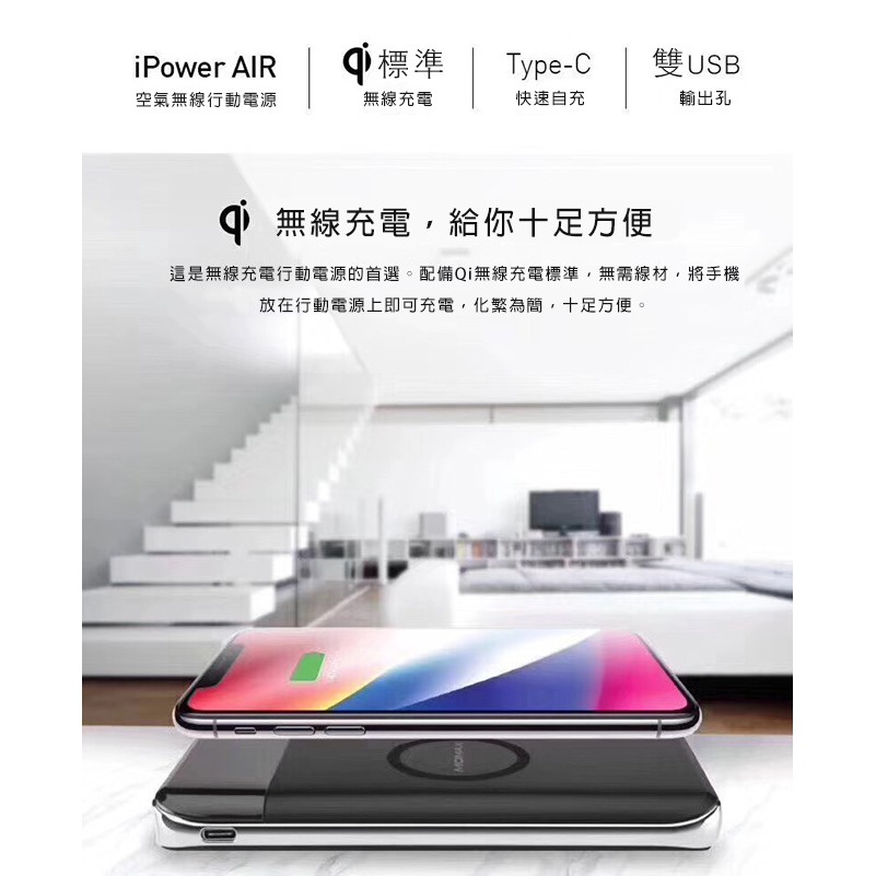 【MOMAX原廠】 摩米士 10000mAh iPower Air 無線充電行動電源(IP80)(出清)