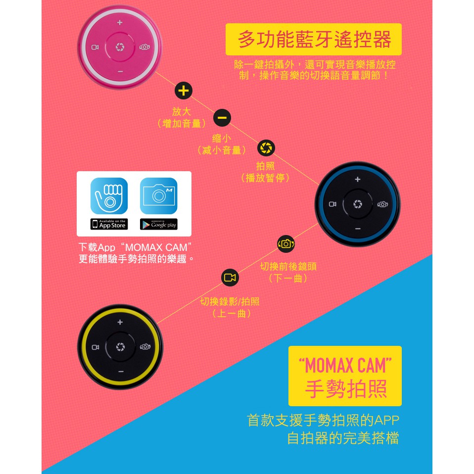 【MOMAX原廠】 Selfie Hero藍牙鋁合金自拍棒+智拍器腳架組70cm