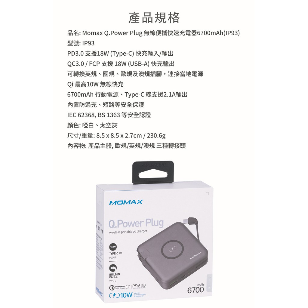 【MOMAX原廠】 無線便攜快速充電器6700mAh(IP93)(出清)