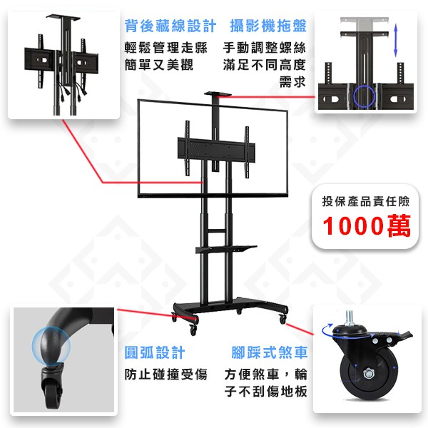 NB AVA1800-70-1P / 55-90吋可移動式液晶電視立架 電視推車 電視架 螢幕架 落地架