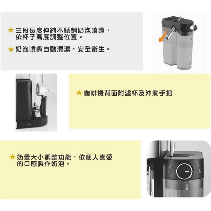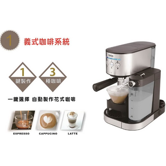 【歌林Kolin】20Bar義式濃縮奶泡咖啡機 蒸氣幫浦 奶泡機 KCO-LN405C(福利品) 免運費