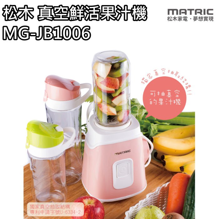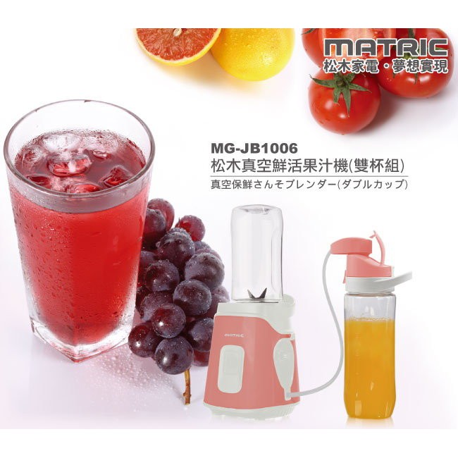 【松木 MATRIC】真空鮮活果汁機(雙杯組) 隨身杯 MG-JB1006 (福利品)免運費