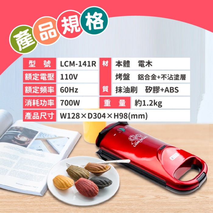 【獅子心】手動翻轉瑪德蓮點心機 雞蛋糕 點心機 LCM-141R 免運費