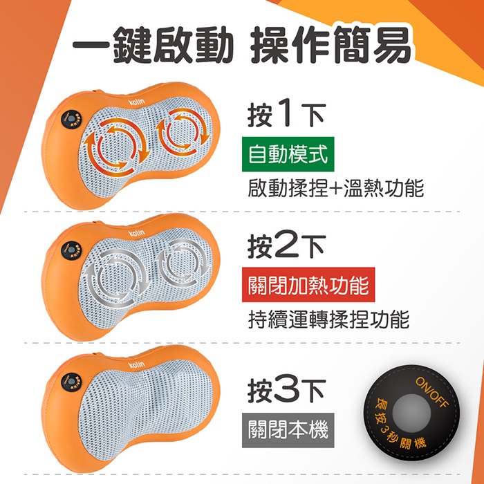 【歌林 Kolin】溫熱揉捏按摩器 按摩墊 按摩枕 KMA-LN006 免運費