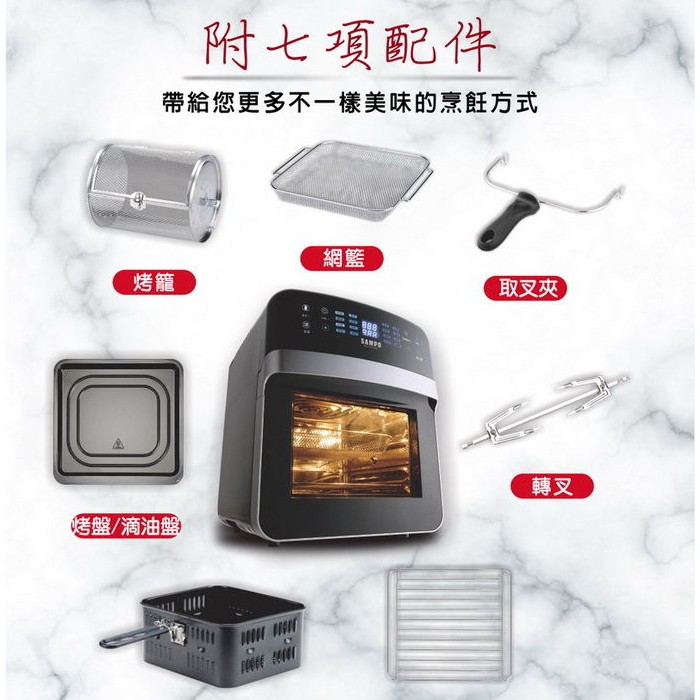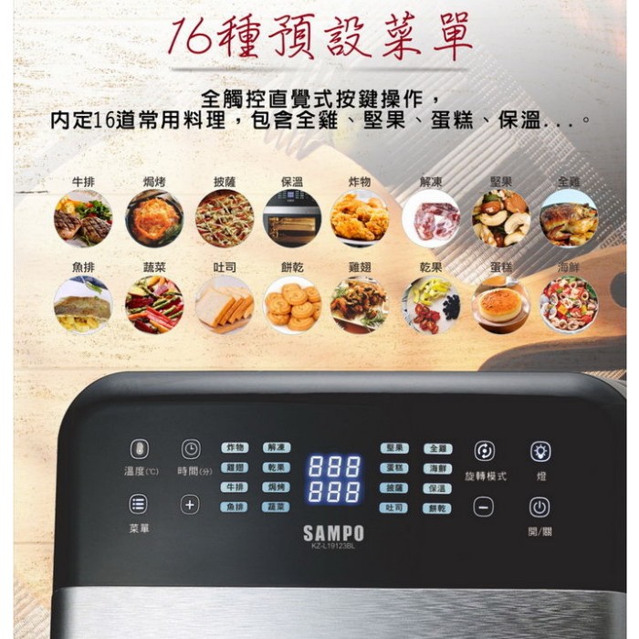 【聲寶 SAMPO】12L智能氣炸烤箱 氣炸鍋 KZ-L19123BL (福利品) 免運費