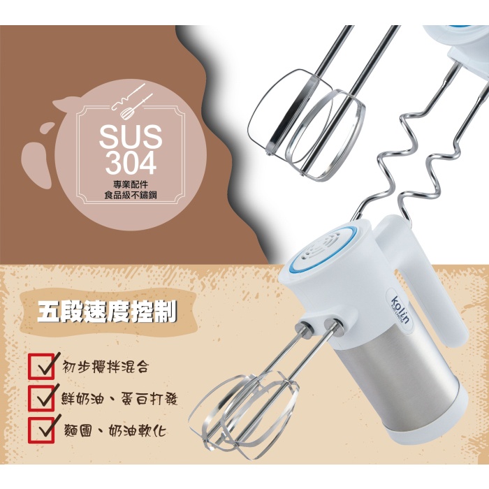 【歌林 Kolin】304不鏽鋼攪拌器 攪拌機 雙配件 KJE-LN07M 免運費