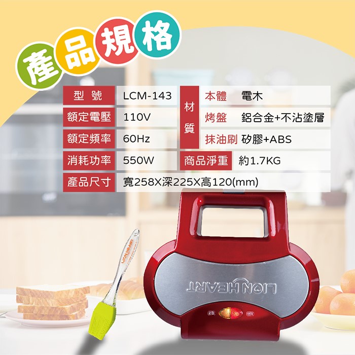 【獅子心】雙杯點心機 杯子 薄餅 餅乾機 LCM-143 免運費