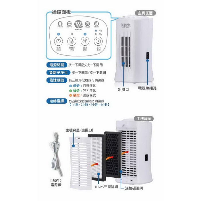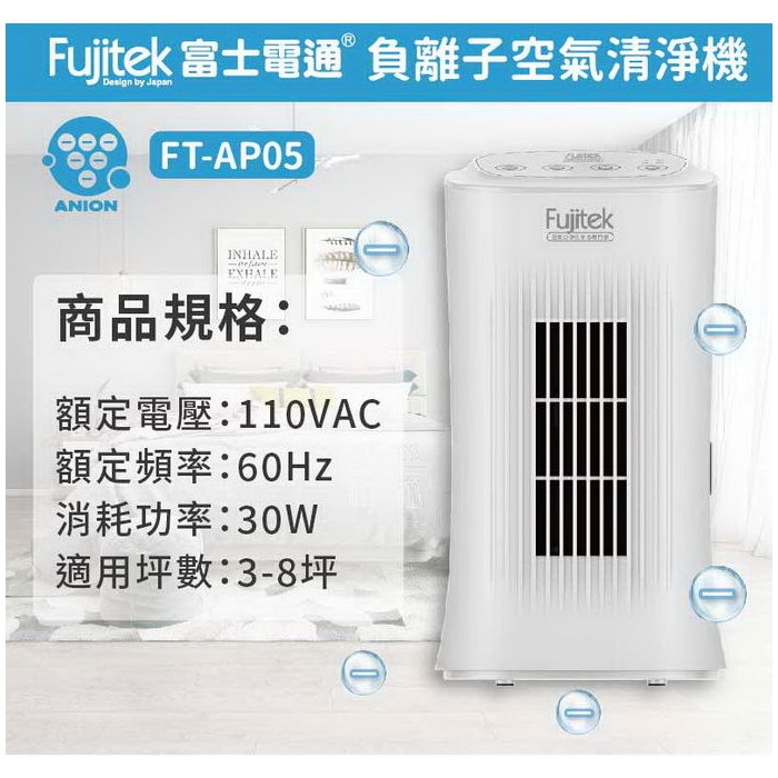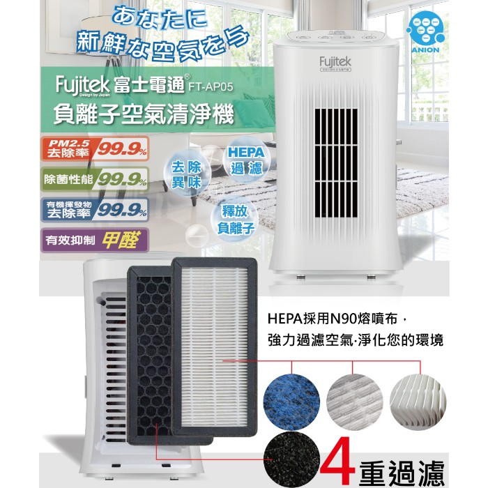 【富士電通】負離子空氣清淨機 HEPA濾網 FT-AP05 免運費
