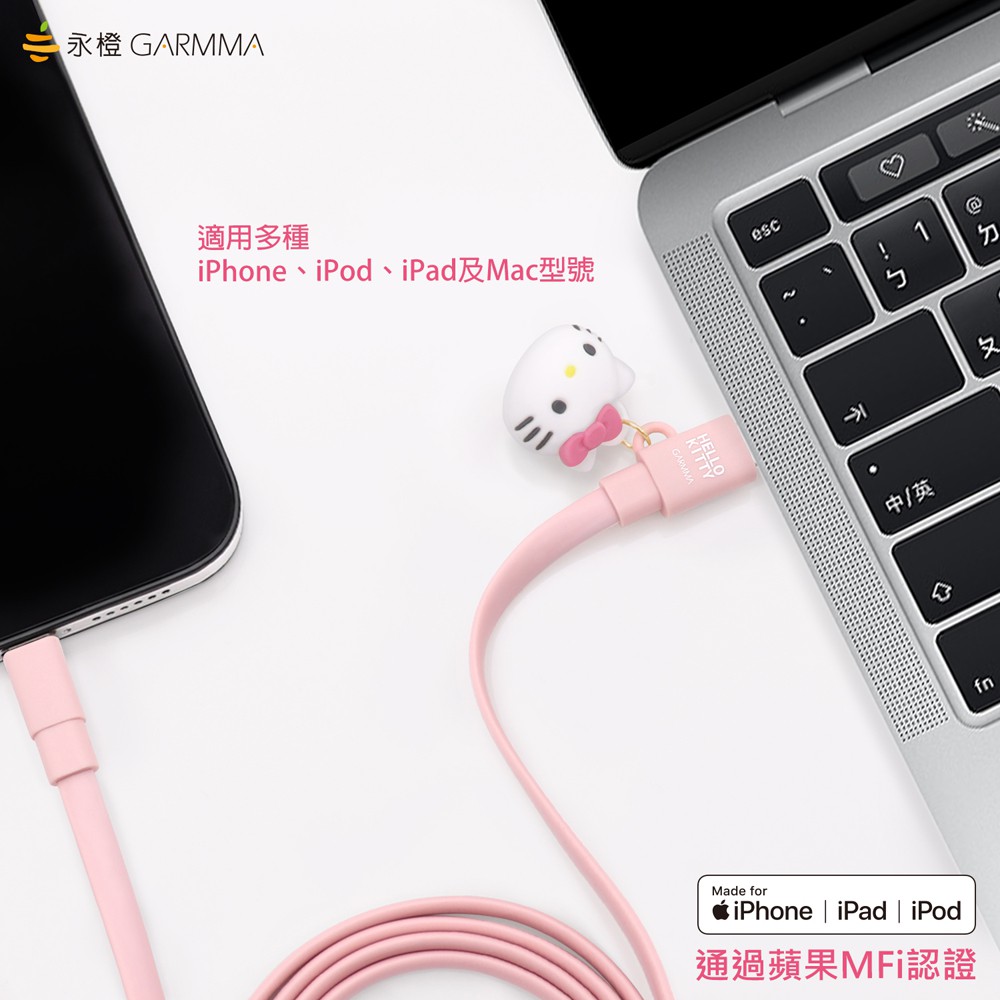 GARMMA Hello Kitty Type-c to Lightning PD快充傳輸充電線 甜心粉