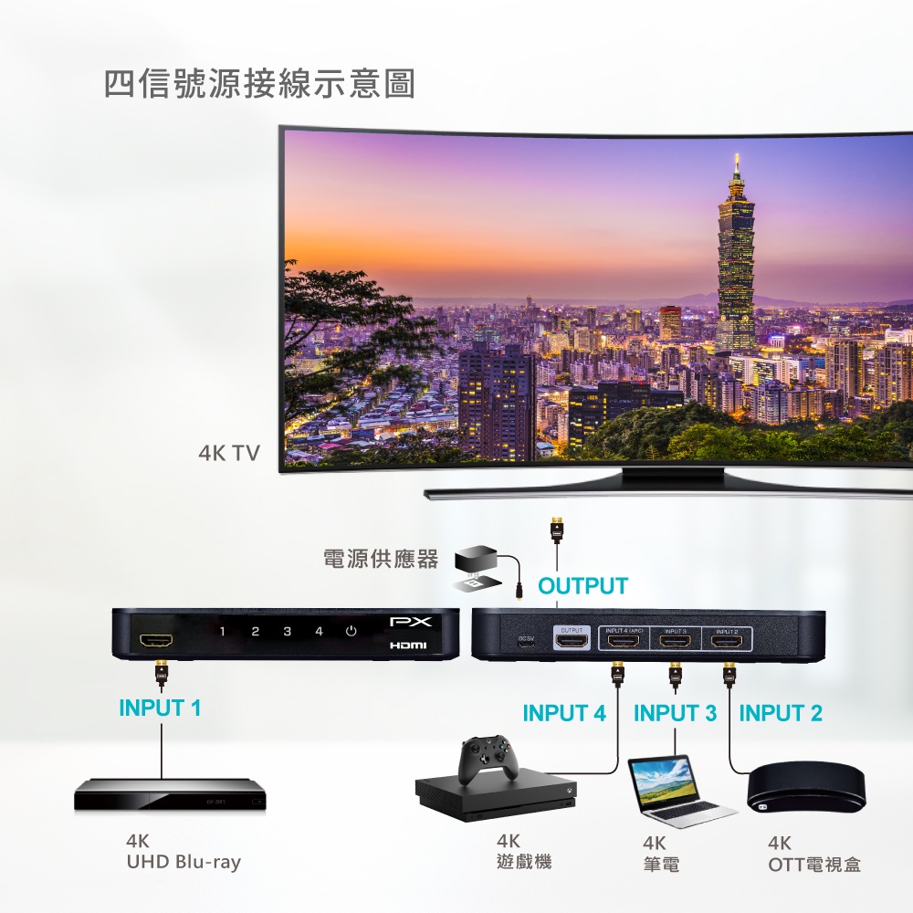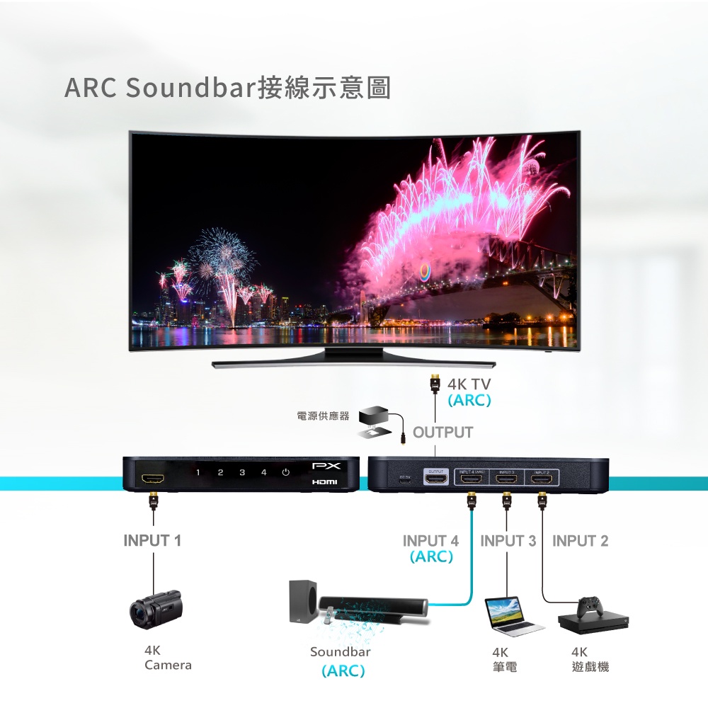 PX大通 HDMI切換器 四進一出 hdmi 高畫質4進1出 切換器 4K 2K HD2-410ARC