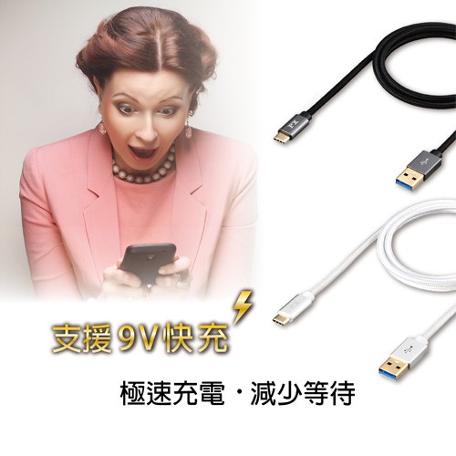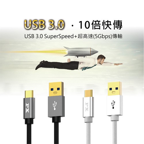 PX大通 UAC3 USB 3.0手機高速充電TYPE-C傳輸線1米/2米(白色/黑色) UAC3