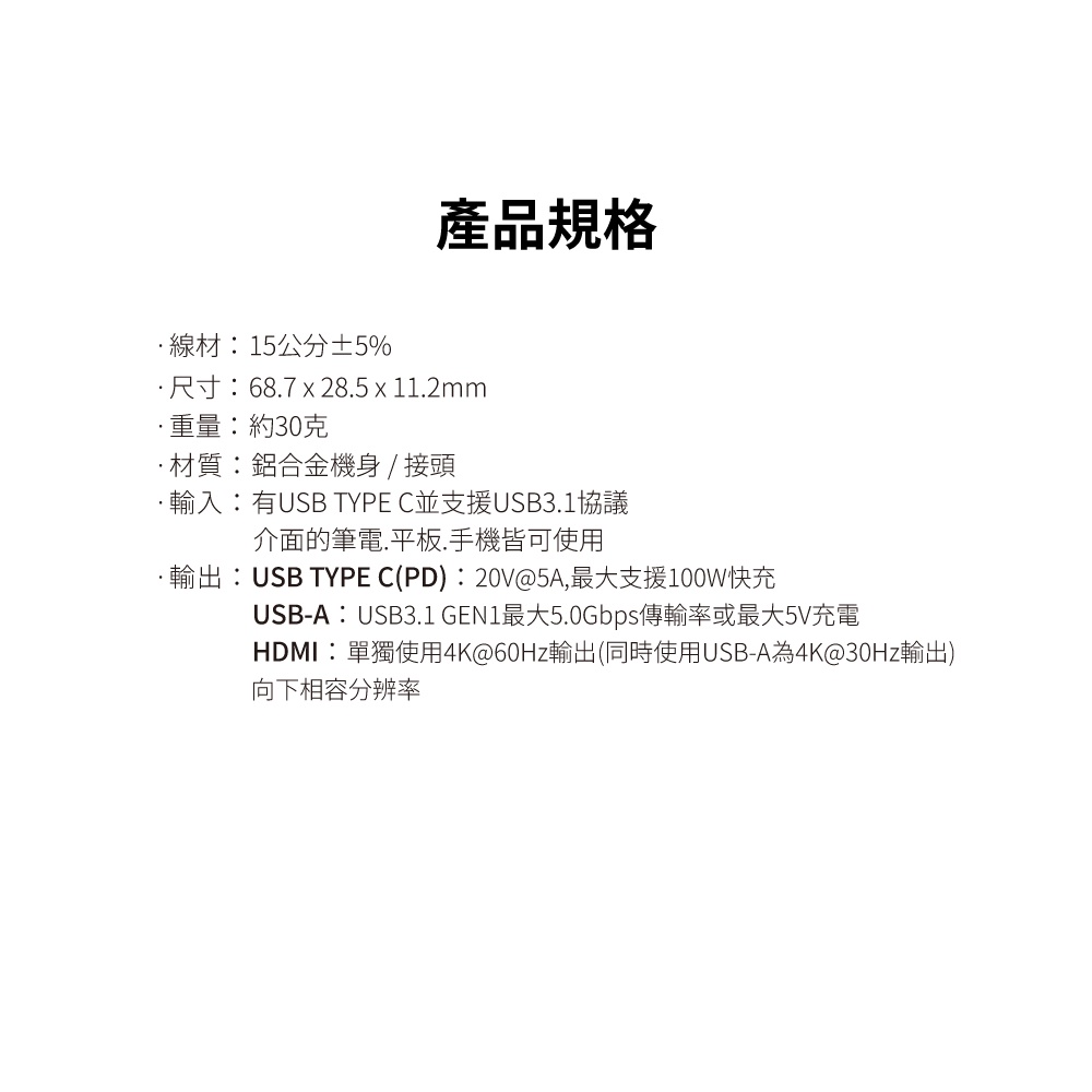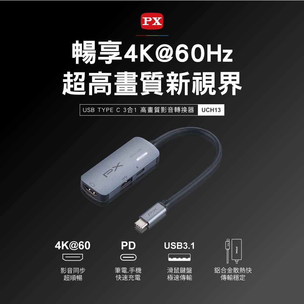PX大通 UCH13 USB TYPE C HUB 4K@60 HDMI 3合1 集線器 兩年保固 高畫質影音轉換器
