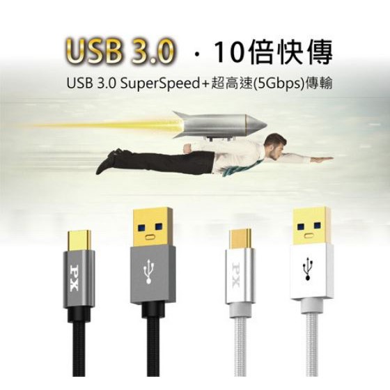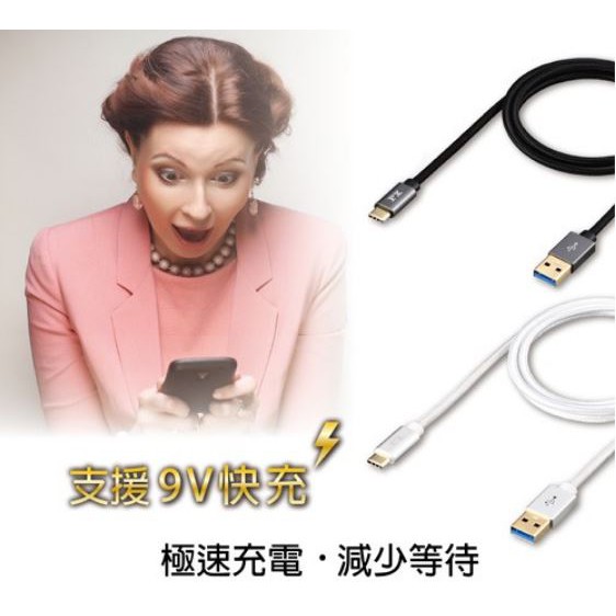 大通 USB 3.0手機高速充電TYPE-C傳輸線1米(白色/黑色) UAC3