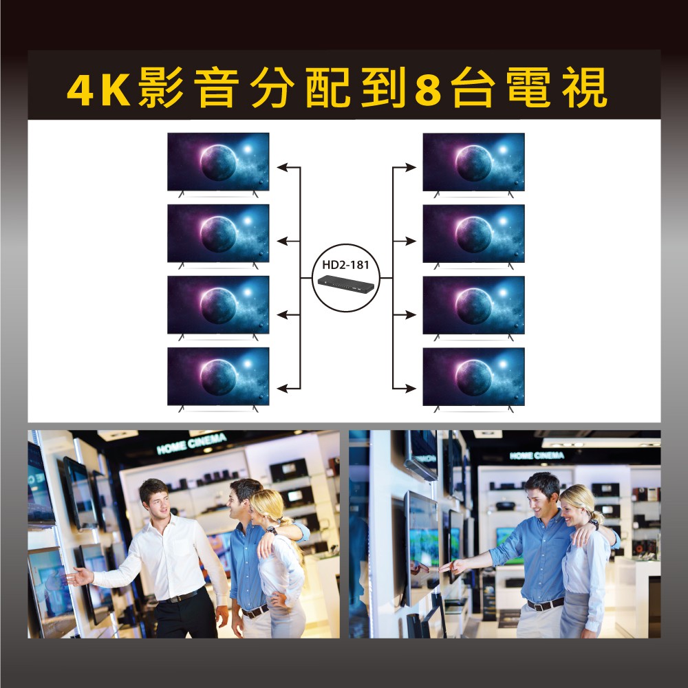 PX大通 HD2-181 HDMI 1進8出 分配器 切換器 4K高畫質 HD 支援顯示4K與1080P