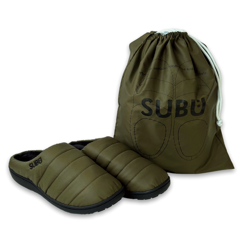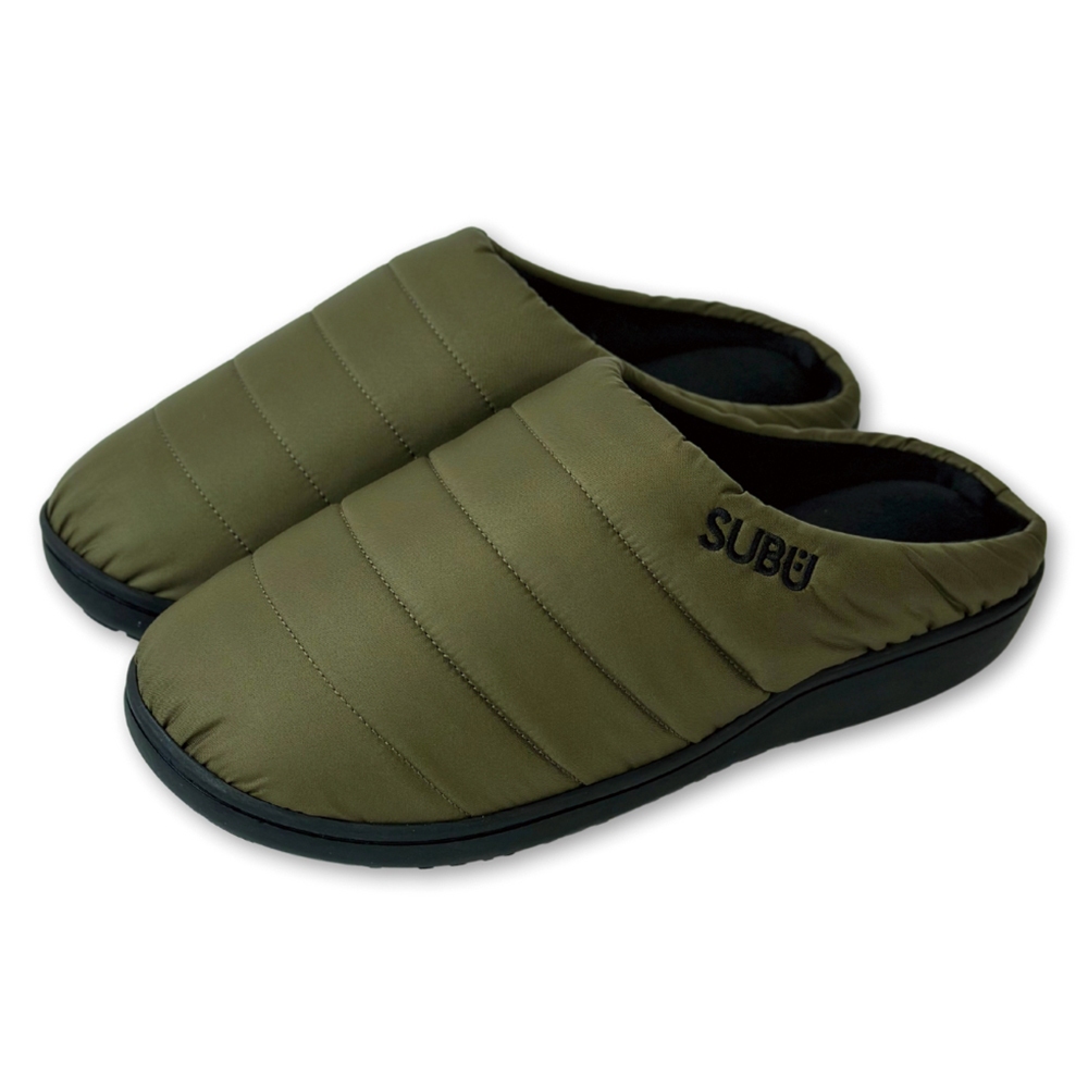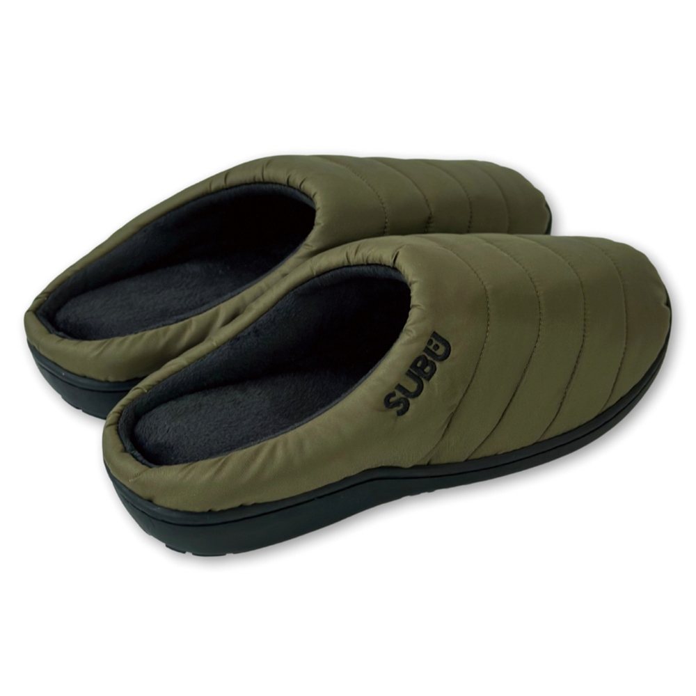 日本SUBU 保暖拖鞋 羽絨刷毛 必備露營鞋 軍綠色 男女 冬季防寒涼鞋 難燃 室內戶外兩用 防滑麵包鞋 懶人鞋 一腳蹬
