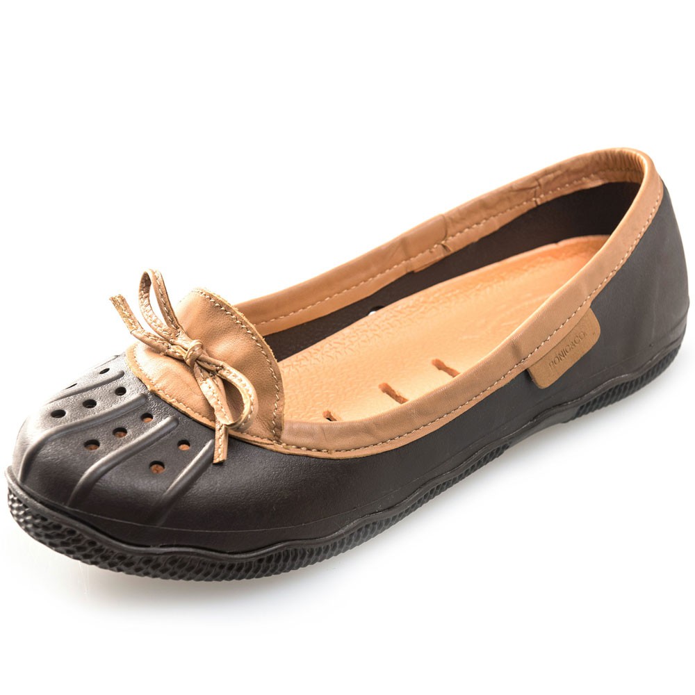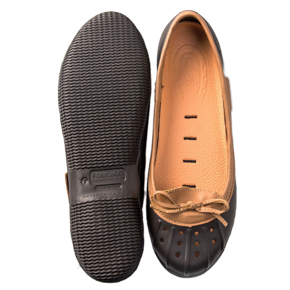 美國加州 PONIC&Co. ELLA 防水輕量 娃娃鞋 雨鞋 咖啡色 女 懶人鞋 休閒鞋 環保膠鞋 平底 真皮滾邊