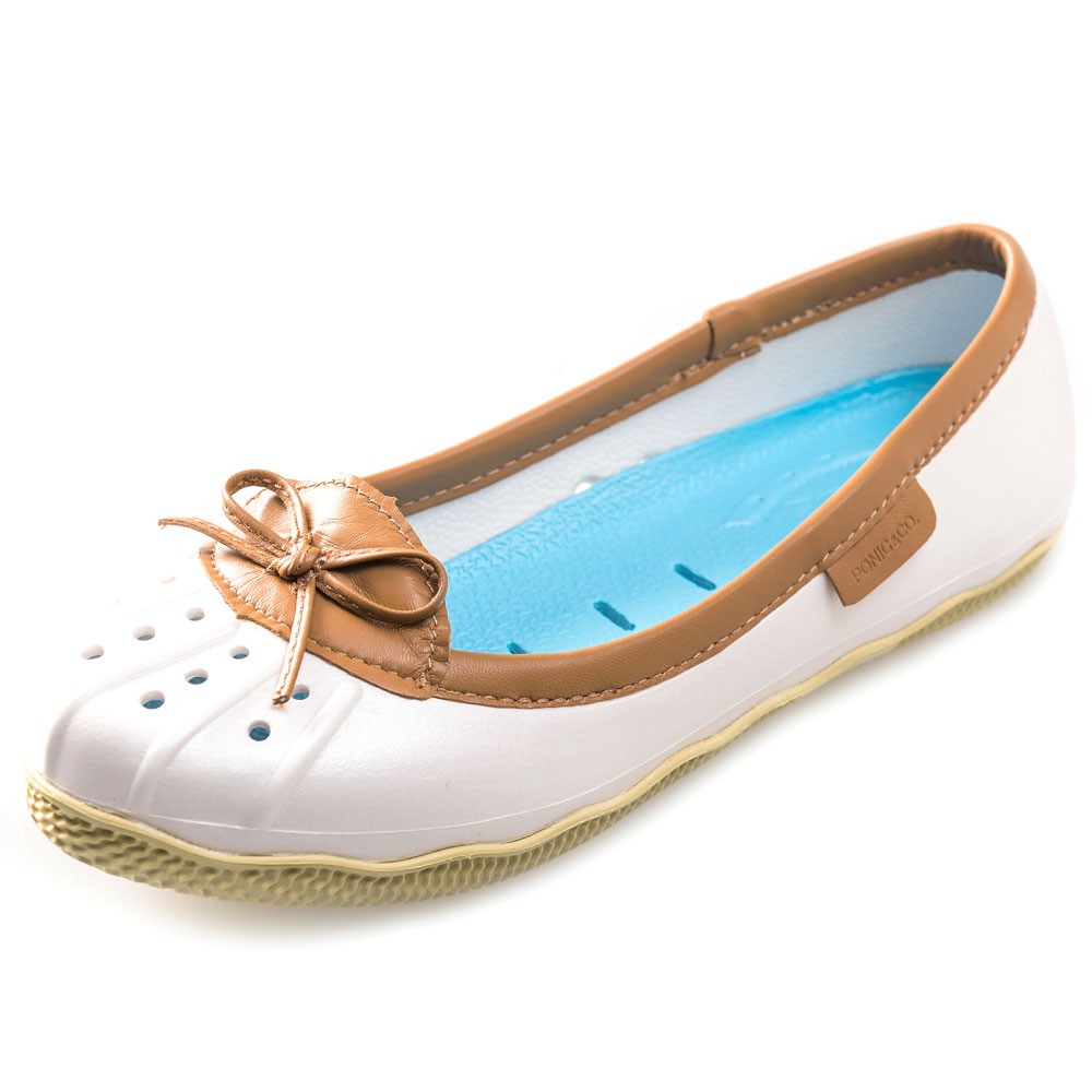 美國加州 PONIC&Co. ELLA 防水輕量 娃娃鞋 雨鞋 白色 女 懶人鞋 休閒鞋 環保膠鞋 平底 真皮滾邊