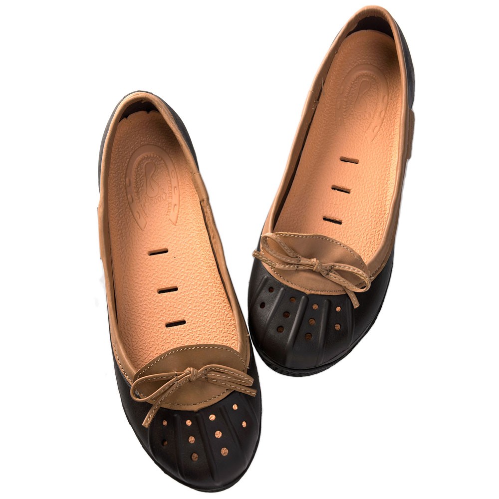 【24cm】美國加州 PONIC&Co. ELLA 防水輕量 娃娃鞋 雨鞋 黑色 女 懶人鞋 休閒鞋 環保膠鞋 真皮滾邊