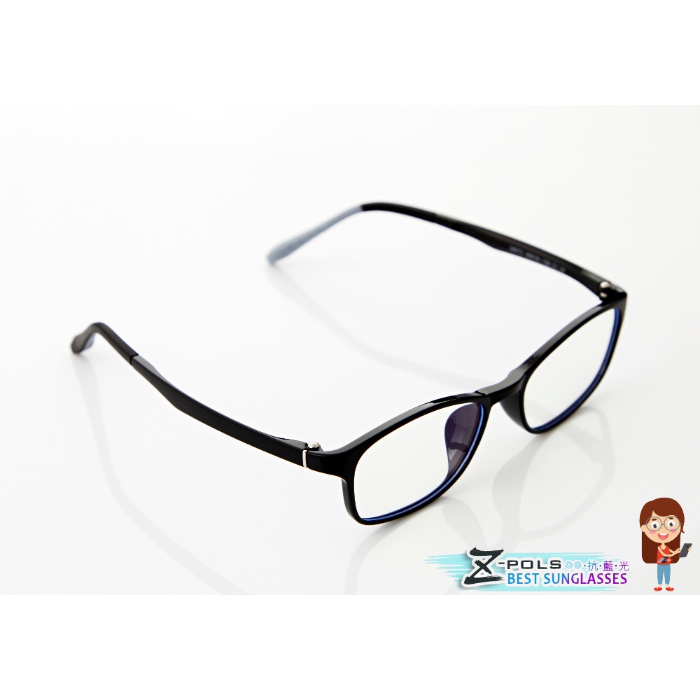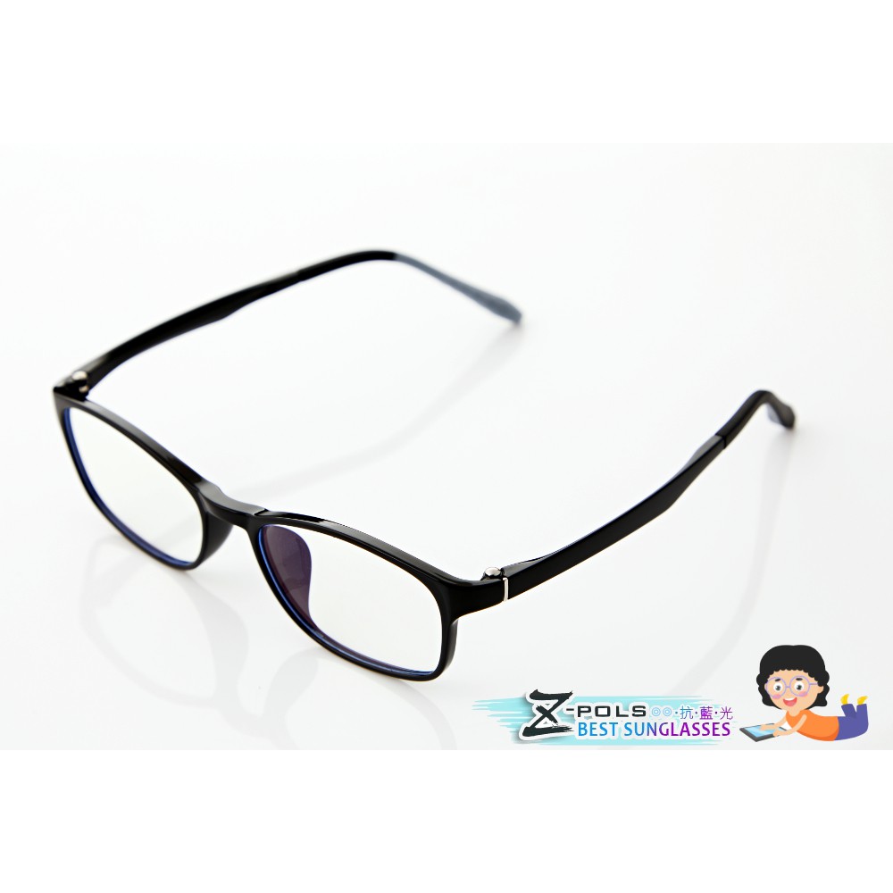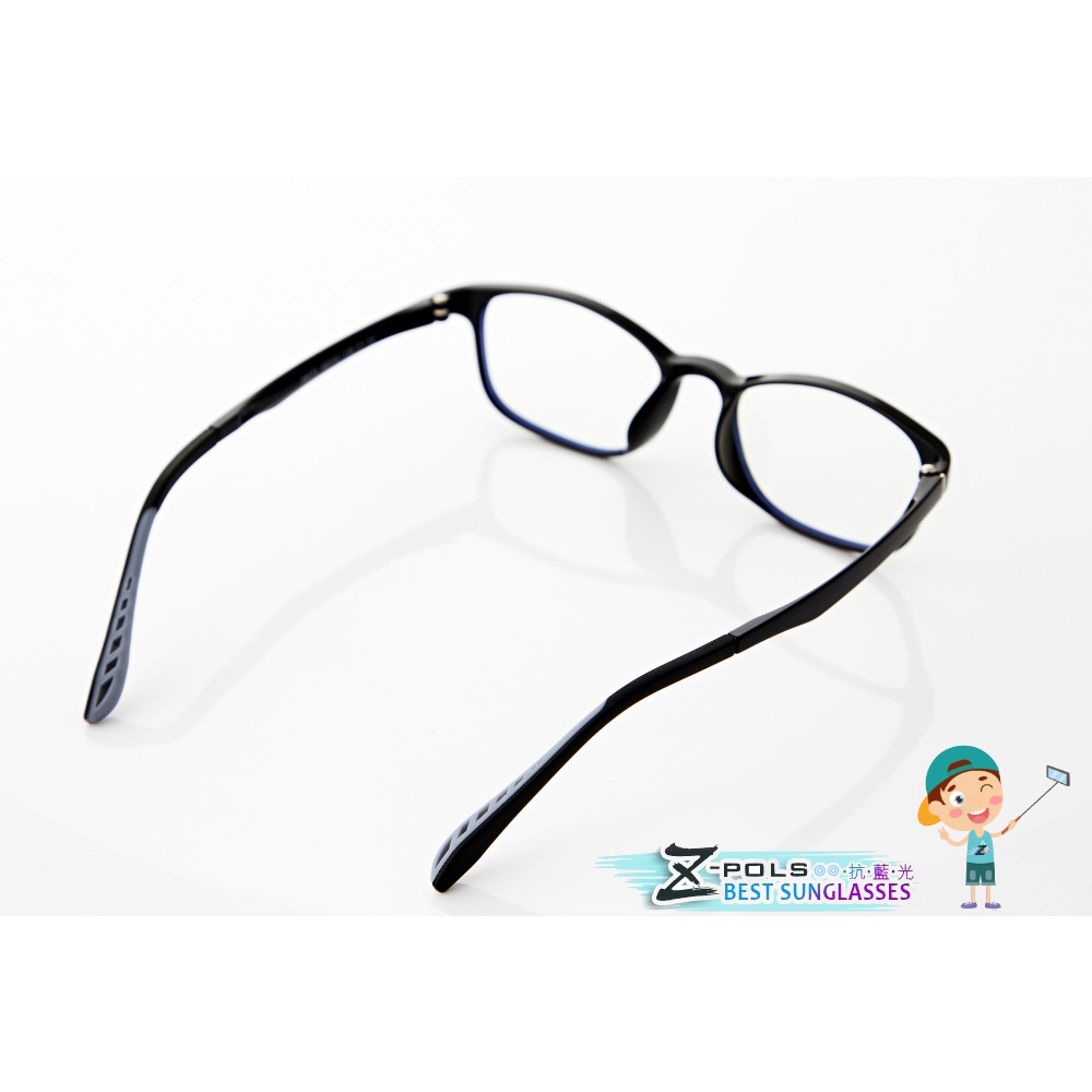 【Z-POLS】兒童專用 柔軟舒適TR90彈性輕量材質濾藍光眼鏡(抗藍光兼具抗紫外線 質感黑)