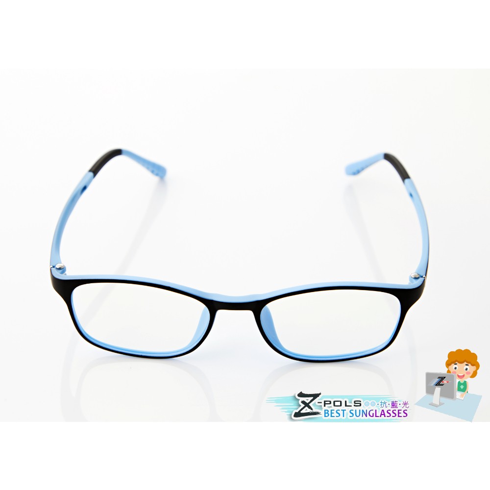 【Z-POLS】兒童專用 柔軟舒適TR90彈性輕量材質濾藍光眼鏡(抗藍光兼具抗紫外線 黑藍配色)