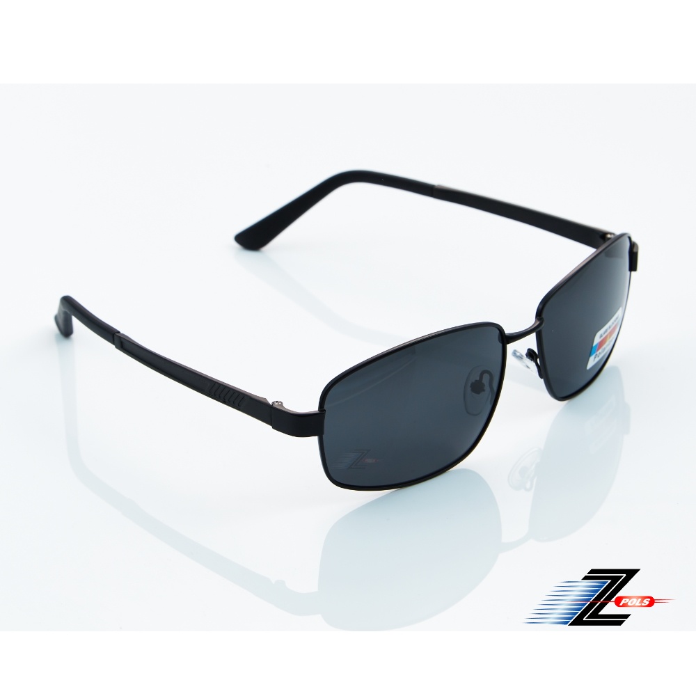 【Z-POLS】帥氣消光黑頂級鋁鎂合金輕量材質 寶麗萊Polarized偏光黑太陽眼鏡(霧黑斜紋邊框設計)