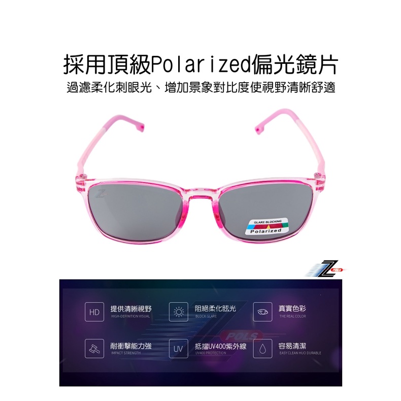 【Z-POLS】兒童專用舒適TR90輕量彈性材質 頂級Polarized寶麗來偏光黑抗UV400太陽眼鏡 質感透紅粉色系