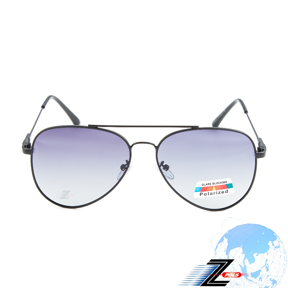 【Z-POLS】金屬名牌風格彈性細邊框全消光黑框腳設計Polarized寶麗來抗UV400漸層黑偏光太陽眼鏡(輕量偏光)