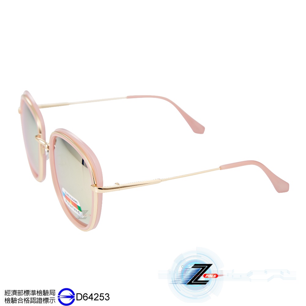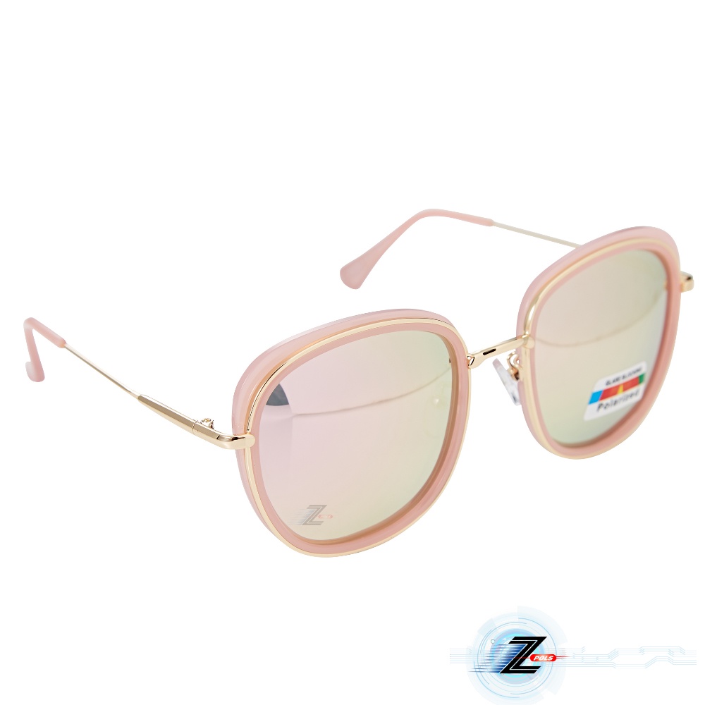 【Z-POLS】日韓流行顯小臉粉紅框頂級REVO電鍍紅Polarized寶麗來偏光抗UV400太陽眼鏡(專櫃款偏光眼鏡)
