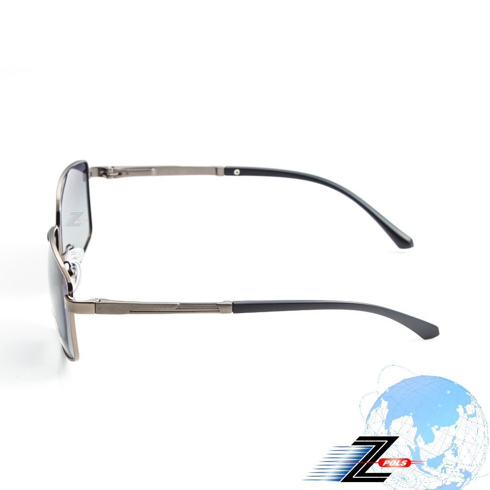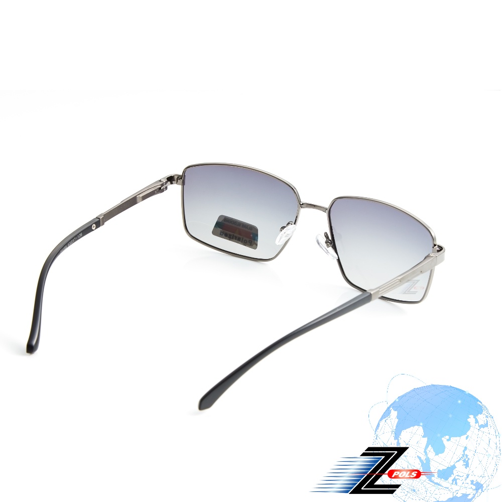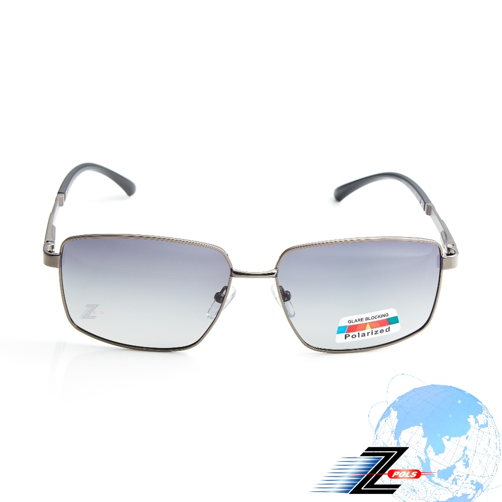 【Z-POLS】高質感金屬銀灰線條邊框設計 頂級Polarized寶麗萊漸層偏光黑抗UV400太陽眼鏡(經典框形偏光鏡)