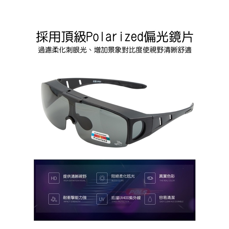 【Z-POLS】頂級設計可掀霧黑框帥氣設計Polarized寶麗來偏光眼鏡套鏡(新一代可包覆近視眼鏡設計抗UV400)