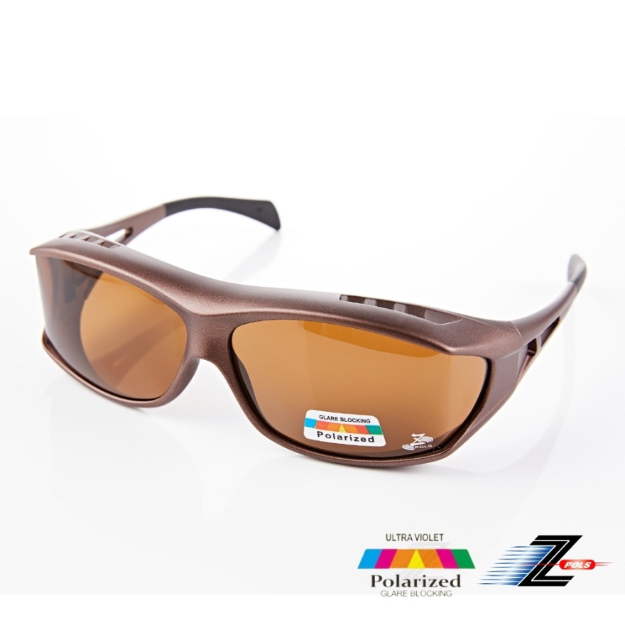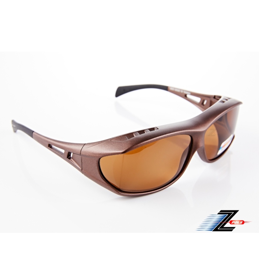 【Z-POLS】最新加大寬版霧茶款 採用頂級一體成型Polarized寶麗來偏光包覆型太陽眼鏡 TR90科技套鏡
