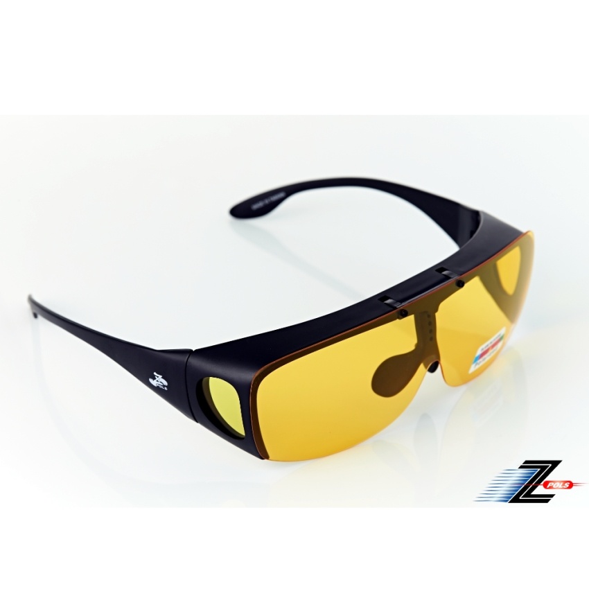 【Z-POLS】頂級可掀式包覆套境 抗UV400 Polarized寶麗來夜用黃偏光眼鏡 近視族必備 提升夜間視野清晰