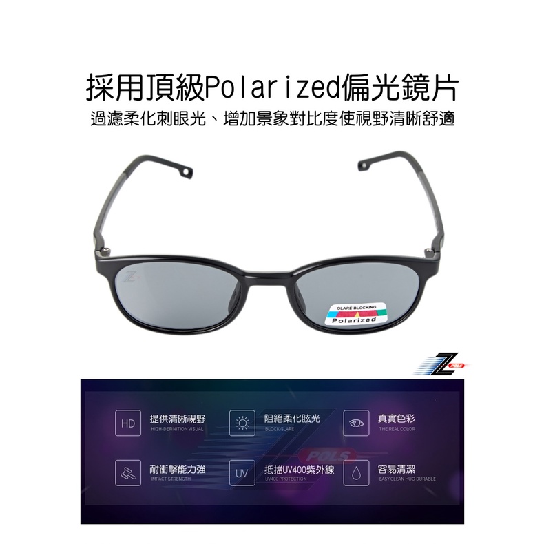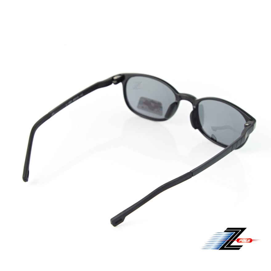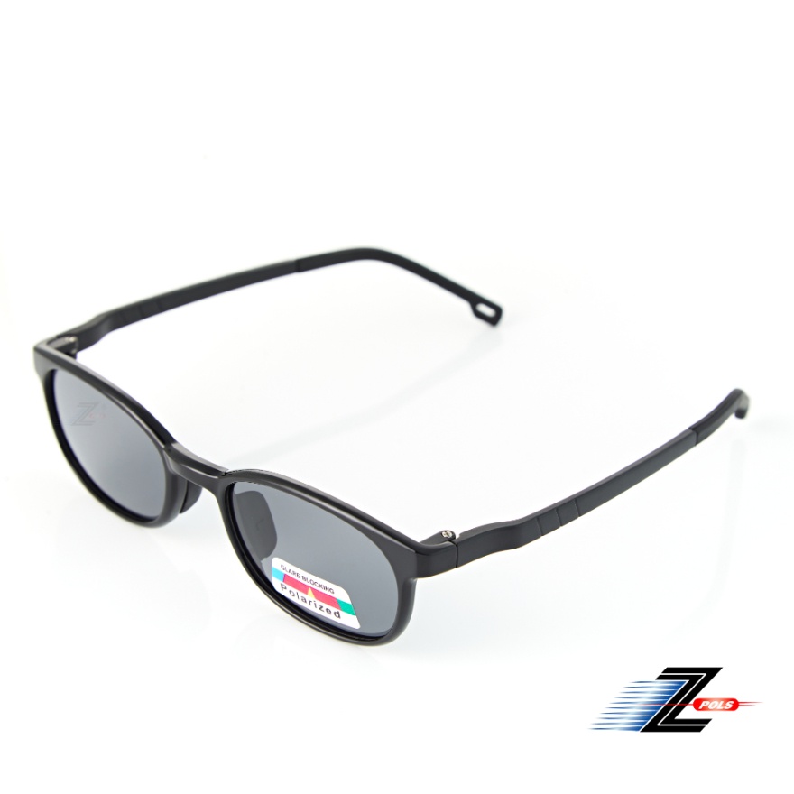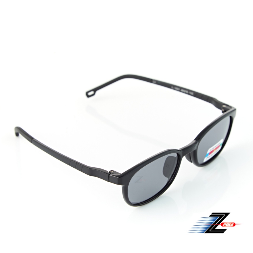【Z-POLS】小童專用舒適TR90輕量彈性材質 頂級Polarized寶麗來偏光黑抗UV400太陽眼鏡 質感亮面黑色系