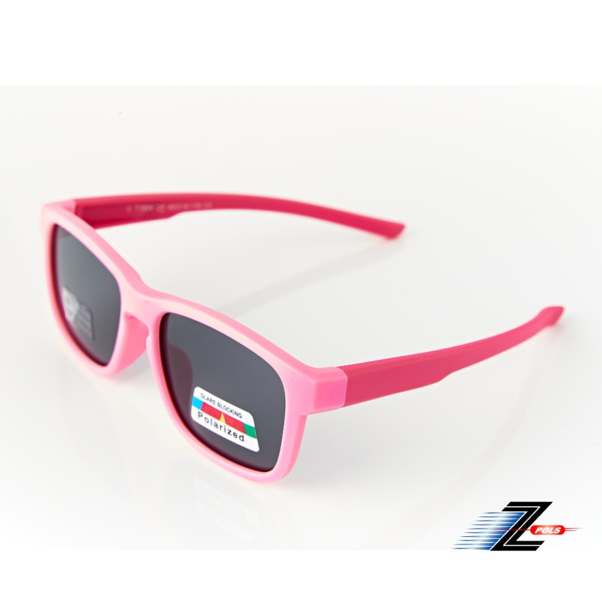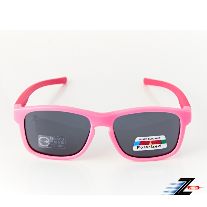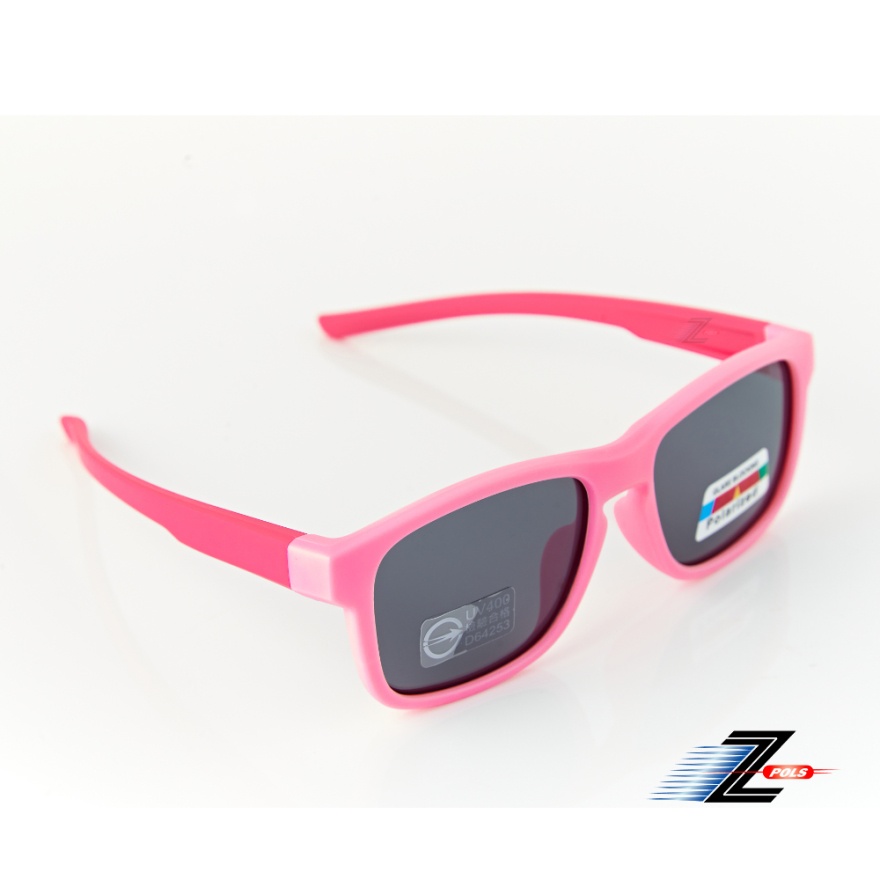 【Z-POLS】兒童款粉桃紅矽膠軟質彈性舒適輕量大框 Polarized寶麗來偏光太陽眼鏡(鏡片抗紫外線UV400)