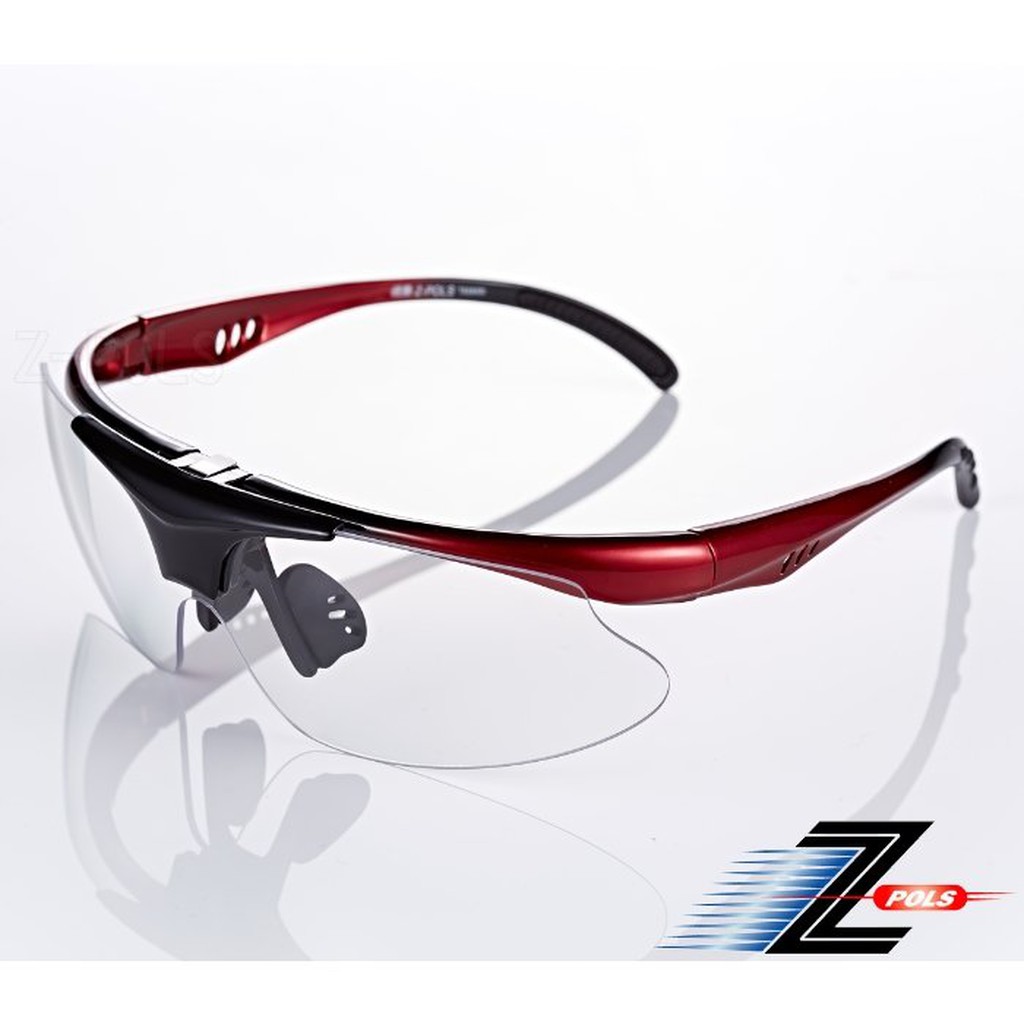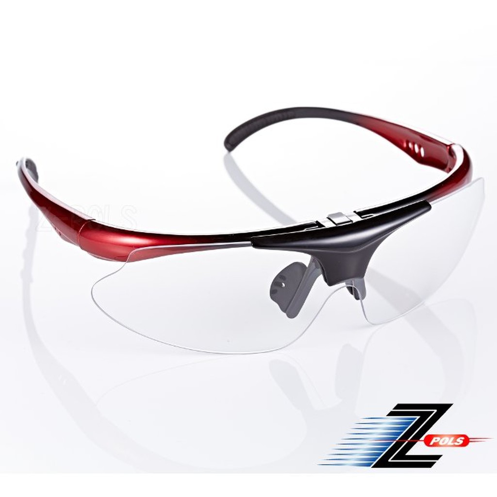 【視鼎Z-POLS】強化頂級可掀可配度設計 黑紅漸層配PC防爆抗UV400透明鏡片 專業級運動防風鏡!盒裝全配!