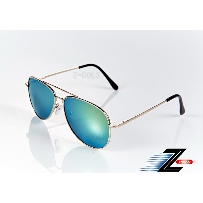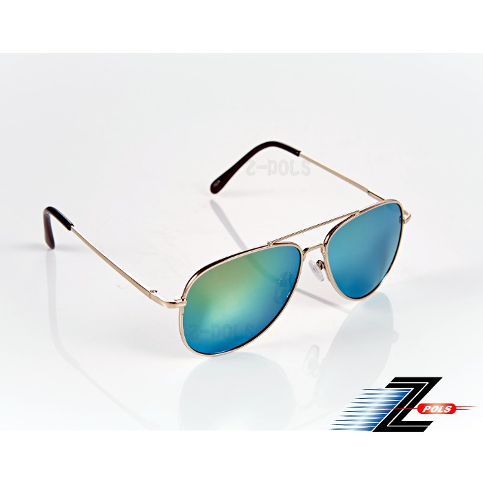 【視鼎Z-POLS兒童流行款】 複刻版時尚設計 頂級抗UV400強化PC片 金屬太陽眼鏡(金綠款)