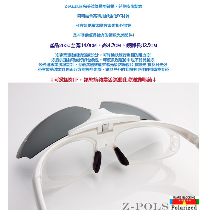 【Z-POLS全新設計款 】強化質感白 保麗來偏光 可配度設計頂級運動太陽眼鏡,原裝上市