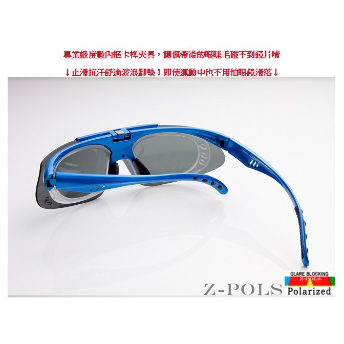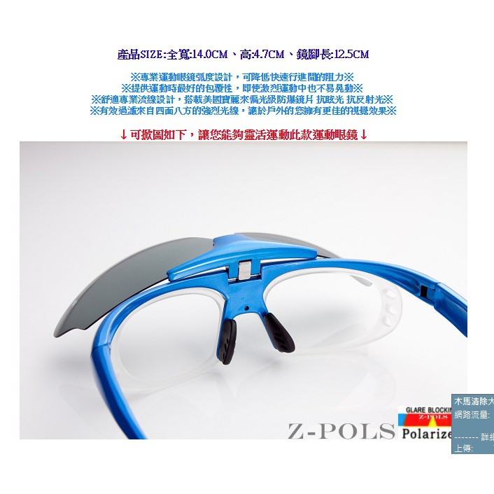 【Z-POLS全新設計款 】強化型質感藍 保麗來偏光 可配度設計頂級運動太陽眼鏡,原裝上市