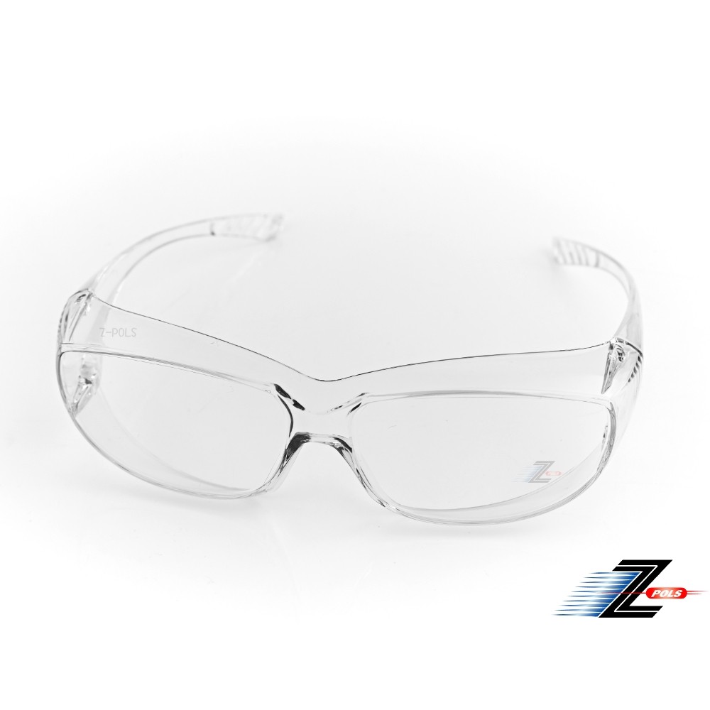 Z-POLS 近視族可用 專業透明款舒適PC強化抗UV400紫外線全透明防飛沫眼鏡