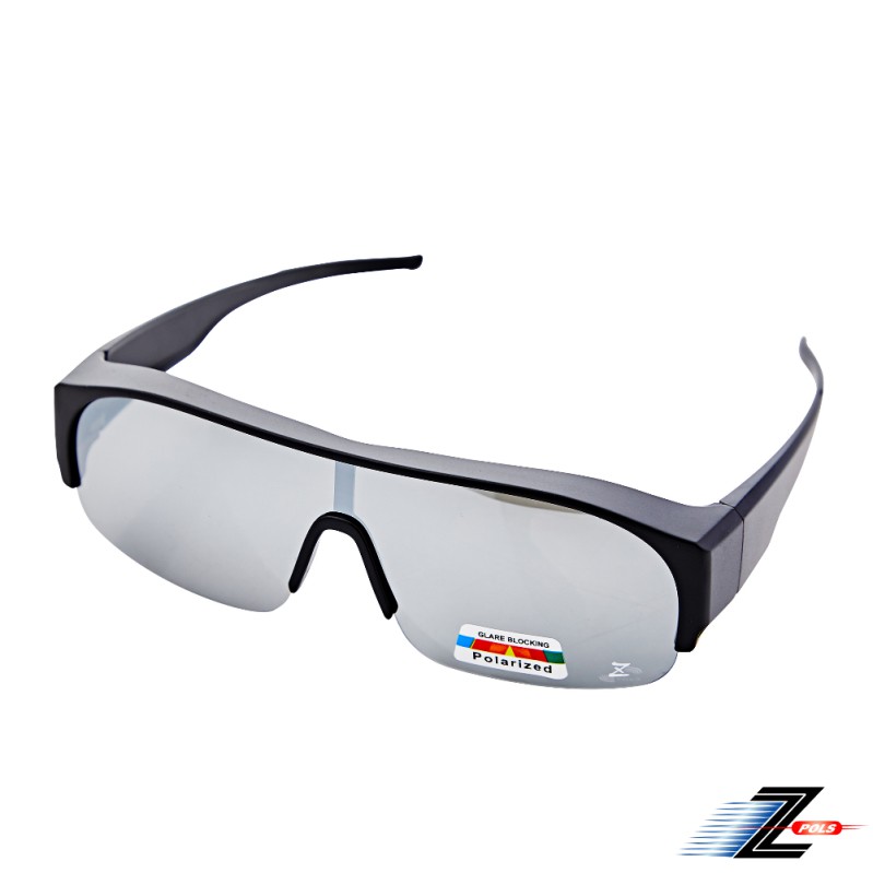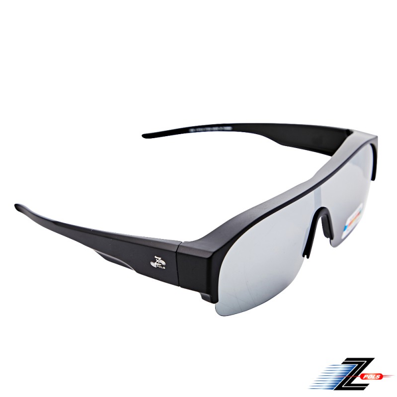 【Z-POLS】新一代半框包覆式設計 抗UV400頂級Polarized寶麗來電鍍水銀黑偏光眼鏡(消光黑 近視族必備款)
