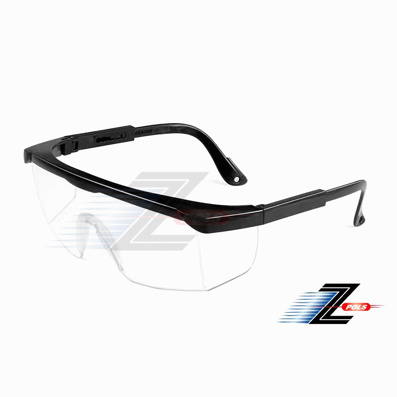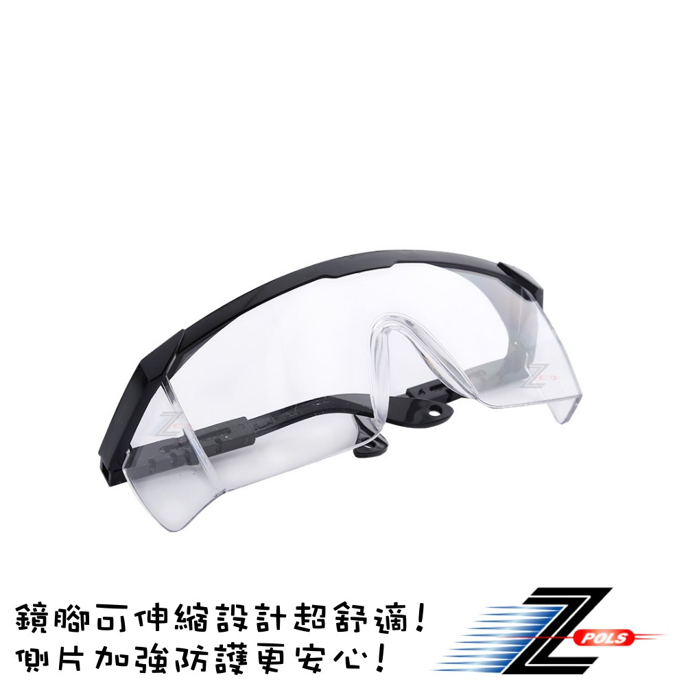 【Z-POLS】有型質感透明防風抗紫外線頂級運動防飛沫防塵防疫眼鏡M1(鏡腳可伸縮設計 側片加強防護)