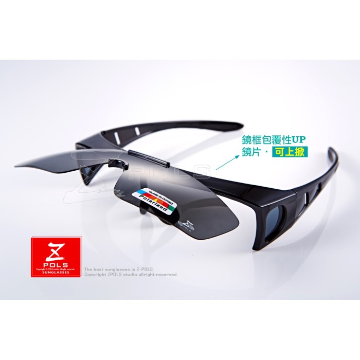 【視鼎Z-POLS頂級設計可掀款】加大設計可包覆近視眼鏡於內!採用Polarized寶麗來偏光太陽眼鏡!(質感亮黑款)