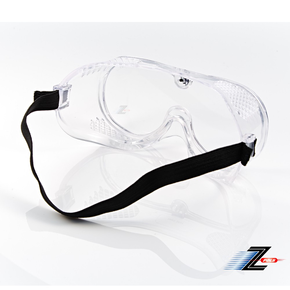 【Z-POLS】舒適全罩式眼鏡 全透明PC安全鏡片抗紫外線眼鏡(配戴不悶熱設計,眼鏡族直接套用)